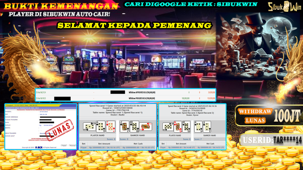 SIBUKWIN merupakan Situs Gacor dan Terpercaya yang membayar semua kemenangan member hingga lunas. Setiap pembayaran pada situs kami dilakukan dengan cara transfer ke rekening tujuan yang sudah di daftarkan pada situs online kami, Pembayaran hanya dapat di proses jika rekening yang di daftarkan telah valid dan dapat di transfer.  Semua kemenangan member yang mendapatkan hadiah jackpot terbesar akan kami posting agar semua pemain dapat melihat situs terpercaya SIBUKWIN ini membayar semua kemenangan member hingga lunas. Setiap postingan yang kami posting akan kami lakukan sensor pada nomor rekening 4 digit dan nama rekening untuk menjaga privasi dan kerahasiaan member. Postingan Jackpot yang kami posting agar member atau pemain yang belum pernah bermain bisa melihat bandar togel Bukan Kaleng Kaleng Seperti SIBUKWIN ini, Semua postingan jackpot yang kami posting dapat di lihat data keasliannya melalui nomor reff yang di tunjukan pada bank atau mbanking saat kita melakukan transfer.