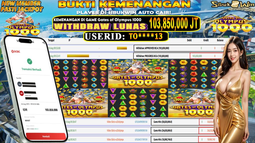 Bukti Kemenangan 26 Agustus 2025 DI GAME Gates of Olympus 1000 103,8 Juta