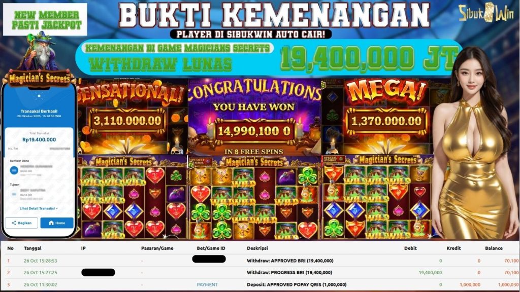 BUKTI KEMENANGAN 26 October 2025 DI GAME Magicians Secrets 19,4 JUTA
