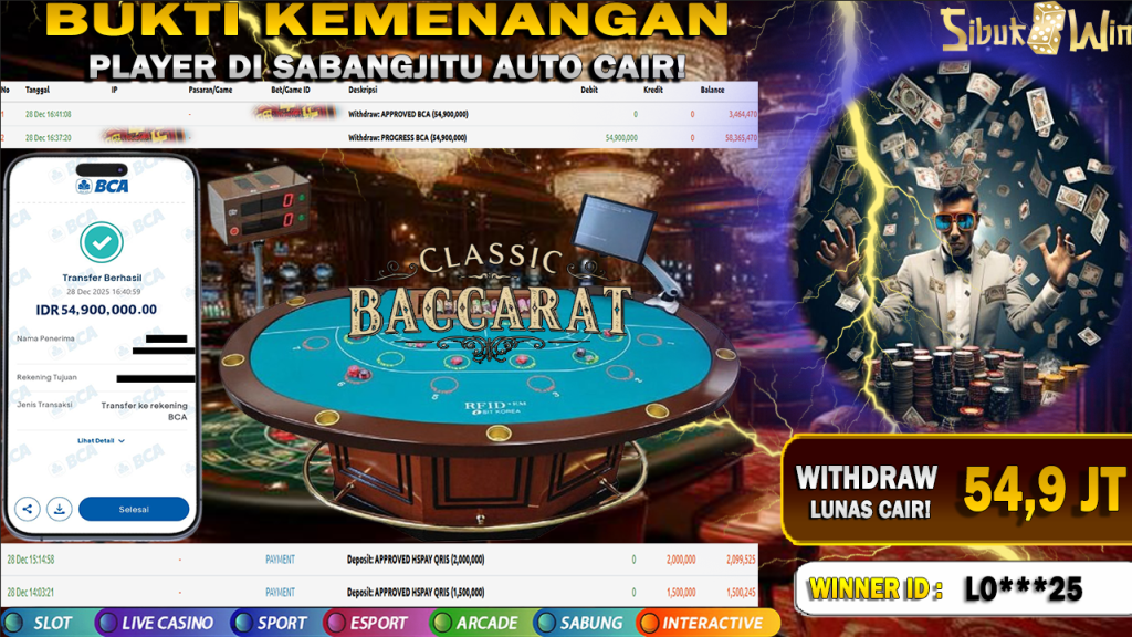 Bukti Kemenangan 28 Desember 2025 Di GAME Baccarat Lobby 54,9 JUTA