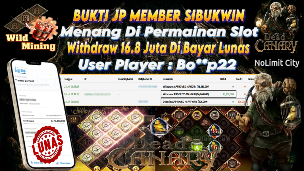 Bukti Kemenangan 28 Juli 2025 Di Game Dead Canary WD 16.8 Juta