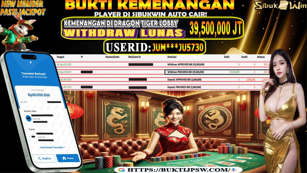 Bukti Kemenangan 28 MEI 2025 Di Dragon Tiger Lobby WD 39,5 Juta