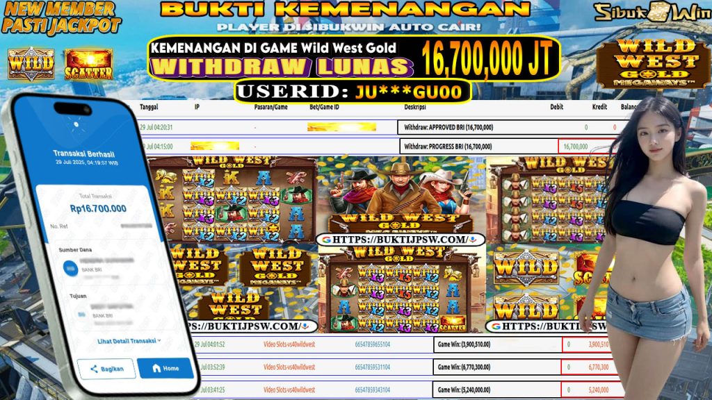 Bukti Kemenangan 29 JULI 2025 DI GAME Wild West Gold WD 16,7 Juta