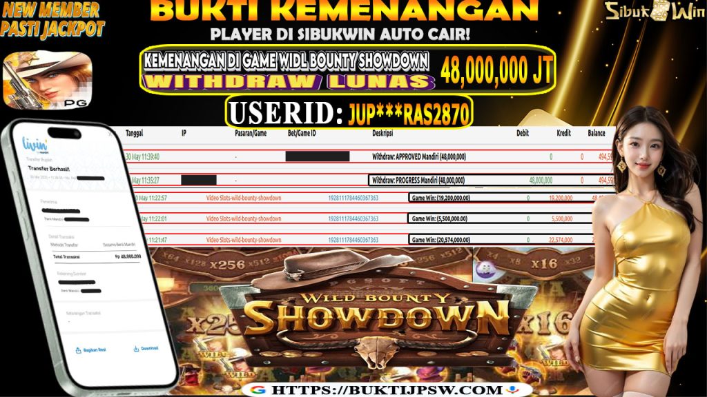 Bukti Kemenangan 30 MEI 2025 Di GAME Wild Bounty Showdown WD 48 Juta