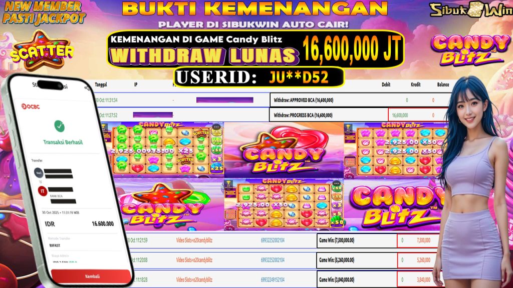 BUKTI KEMENANGAN 30 October 2025 DI GAME Candy Blitz 16,6 JUTA