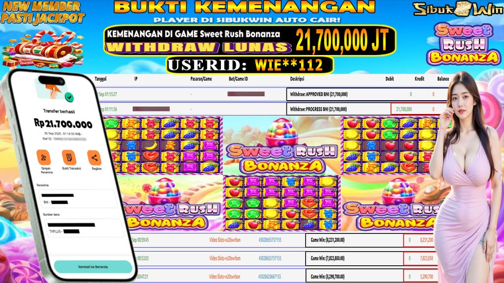 BUKTI KEMENANGAN 30 SEPTEMBER 2025 DI GAME Sweet Rush Bonanza 21,7 JUTA