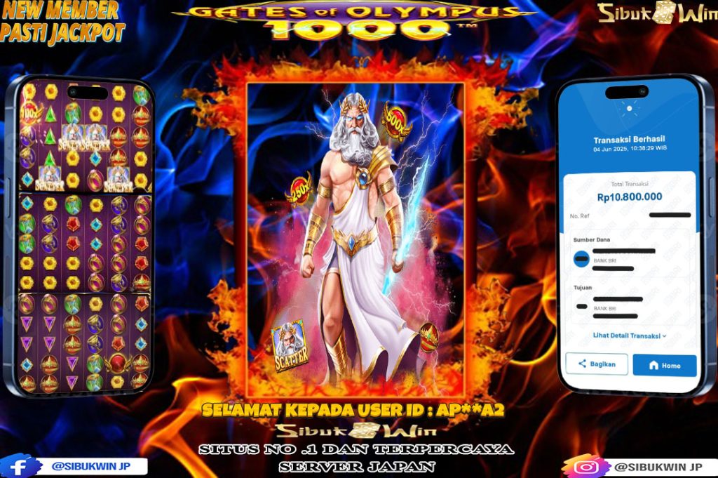 Bukti Kemenangan 4 JUNI 2025 Di GAME Gates of Olympus 1000 WD 10,8 Juta