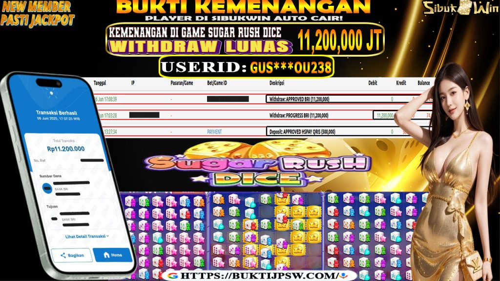 Bukti Kemenangan 6 JUNI 2025 Di GAME Sugar Rush Dice WD 11,2 Juta