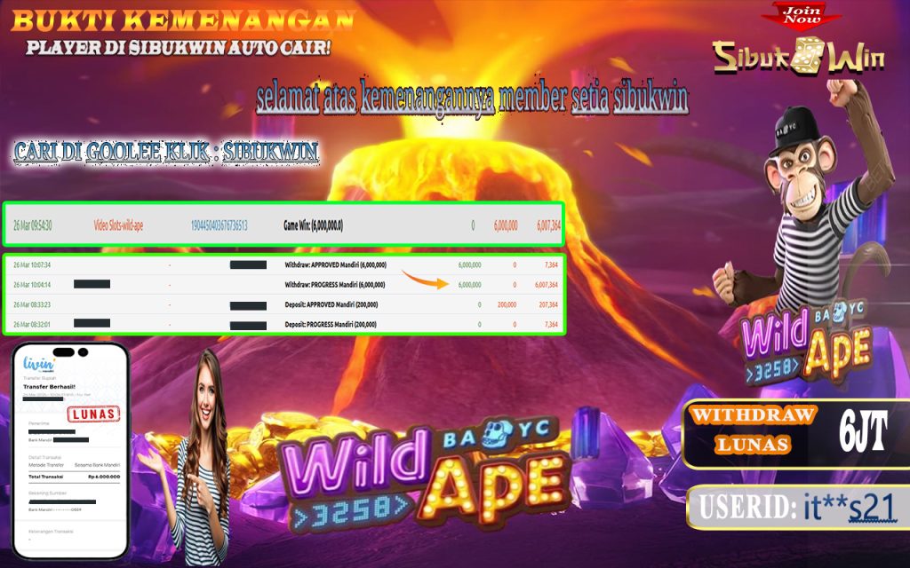 Bukti Kemenangan 26 Maret 2025 Di Game Wild Ape WD 6 Juta